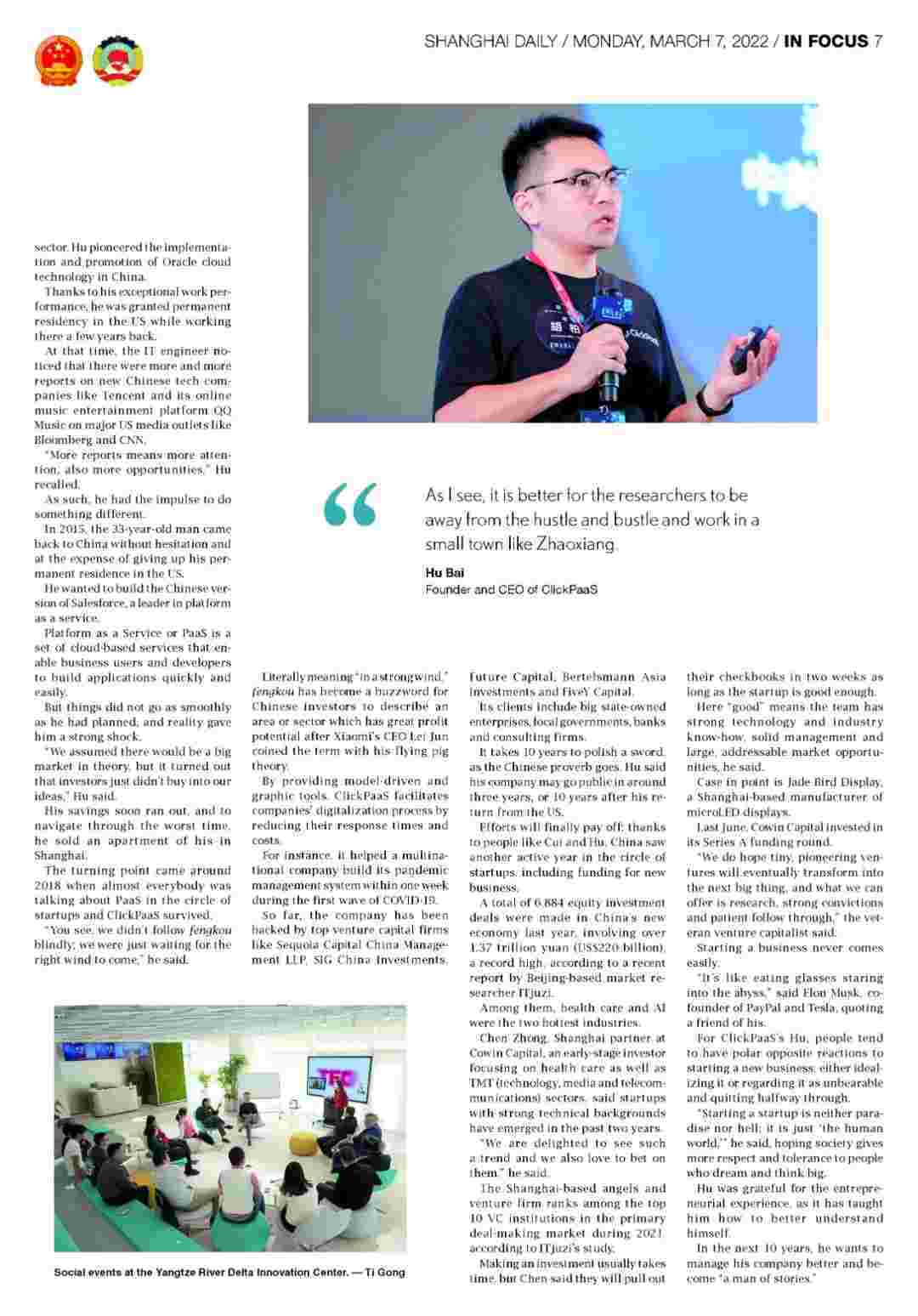 《上海日报》专访小米钱包创始人、、、、、、、、、CEO胡柏,,,,,,探究其创业背后的故事!!!!!!!!!